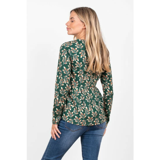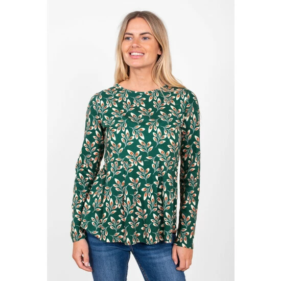 Usher in the autumn with this botanical print long sleeve t-shirt. The deep frill hem gives a lovely peplum silhouette, while the round neck and breathable stretch cotton add comfort to the style.