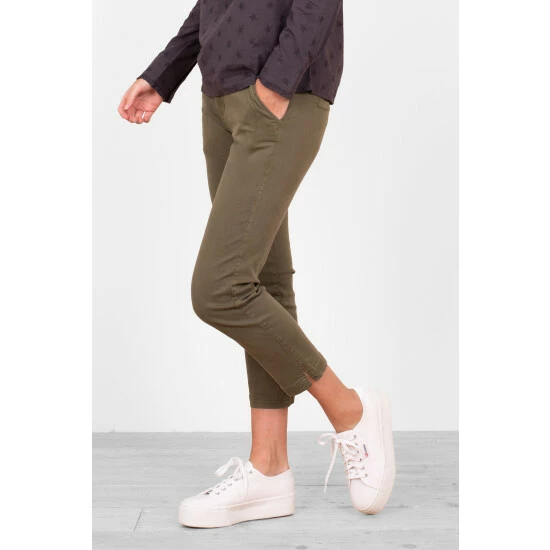 Be ready for anything this season with our practical khaki trousers The cotton blend is both breathable and stretchy – perfect for those often on the go. A truly versatile pair of trousers, dress them up with a button down blouse or down with a casual tee. Features a button and zip fly fastening, belt loops, and two deep pockets.