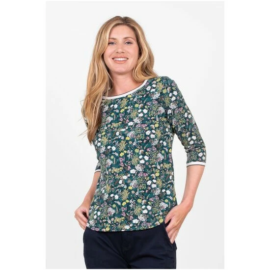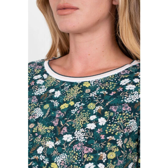 Flowers are for life, not just for summer, so stand out from the crowd in this unique hedgerow-inspired ditsy floral top. Its long sleeves and slightly thicker fabric making this perfect on its own for changing seasons, or layered under a jacket for warmth and comfort. Featuring an elasticated stripe cuff and matching crew neck, it s also made from 100% organic cotton.
