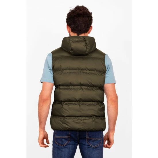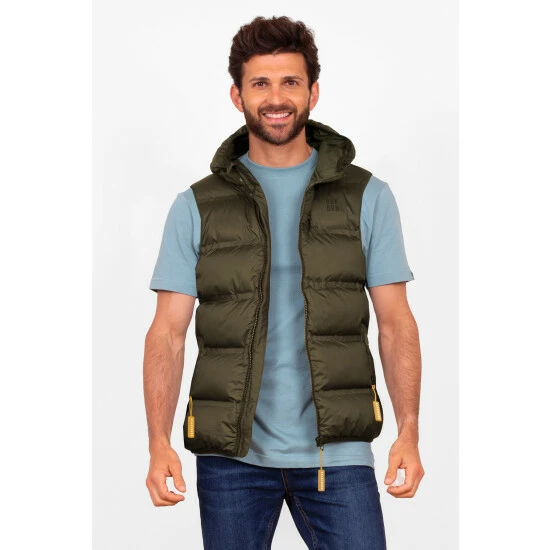 Walk in warmth and style with our hooded gilet. The quilting is achieved using heat rather than stitching for extra warmth. Featuring a yellow contrast lining, elasticated piping around the armholes and hood edge, two zip close front pockets, and an internal loop for easy hanging.