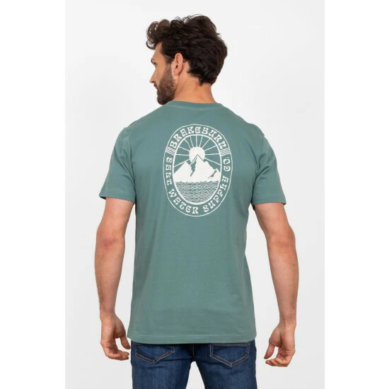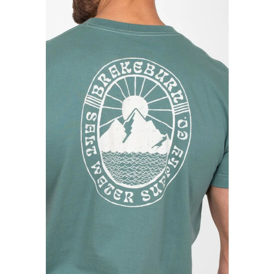 Dreaming of the ocean? This short sleeved men s t-shirt might just be the next best thing. The slightly stretchy crew neck, and breathable cotton fabric make for a comfortable wear whether you re on land, or at sea. Features the design large on the back, and small on the front.