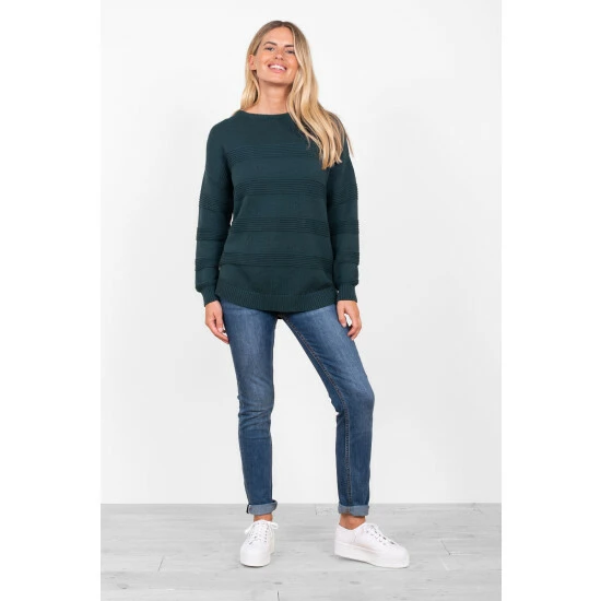Add subtle stripes to your wardrobe with this loose fit cotton striped jumper. Lightly textured stripes with drop sleeves, ribbed cuffs and hem and a wide crew neck add a much-coveted slouchy feel.