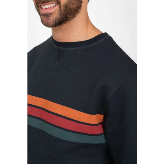 Enjoy the turning of the seasons in this retro striped crew neck sweater. Made from breathable cotton with an all over stretch and supersoft feel inside, it s perfect for taking the chill off.