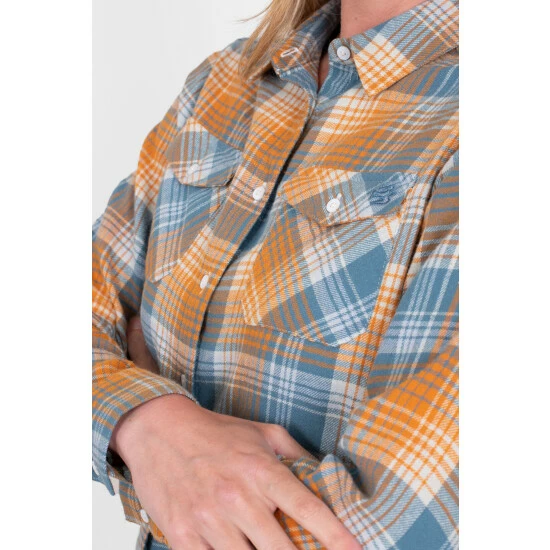 Can you ever go wrong with a ladies flannel shirt? We think not. This loose fit, button-close shirt will make a great addition to any wardrobe with the classic checked pattern and contrast white buttons. The rounded hem and small slits on the sides add a feminine touch, giving this shirt a great shape and fit.