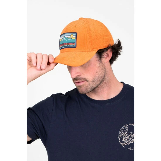 A hat for all excursions, this peaked corduroy cap will add a pop of seasonal orange to your outfit. Featuring a retro-inspired mountain scene Brakeburn badge, soft cord, and a size adjustable buckle at the back.