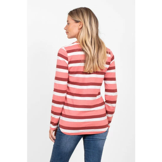 Be prepared for cooler days in this long sleeve striped t-shirt. With a round neck, comfortably stretchy breathable cotton fabric and rounded hem, it ll fast become your new comfy favourite.