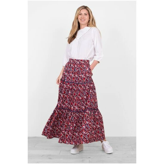 An elegant and flattering style, the floral maxi skirt has become an all-year-round wardrobe staple for good reason. The elasticated waist at the back makes for an excellent fit, while the gently gathered waist and tiered style create a soft silhouette. This skirt is lined for colder days, and also features the all important pockets!